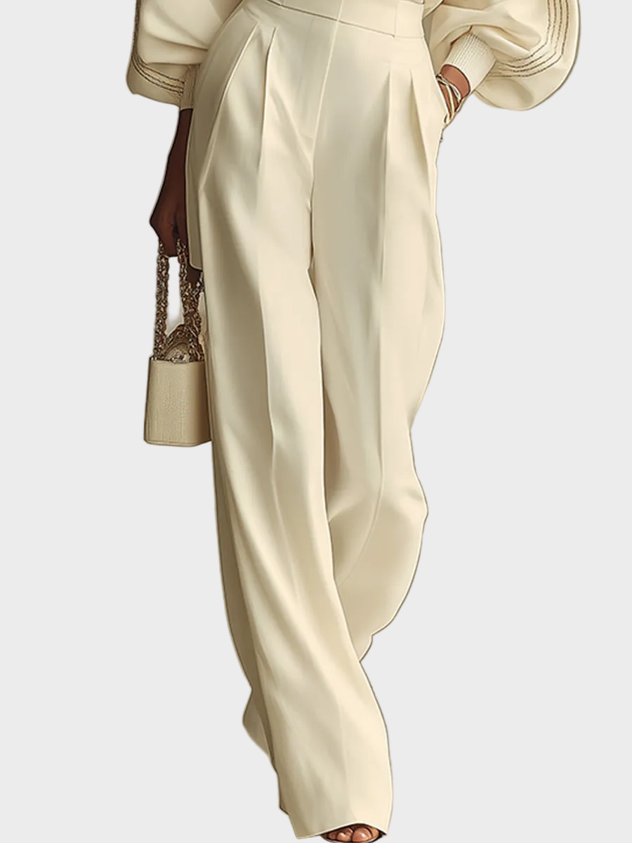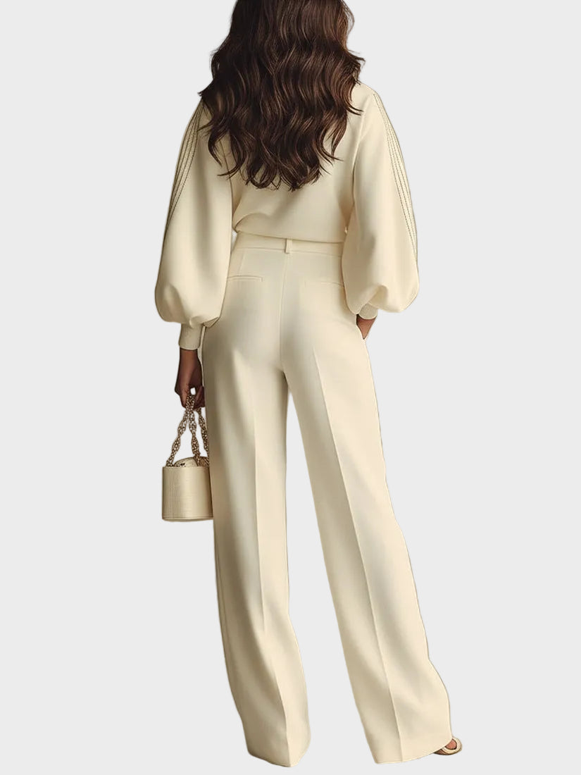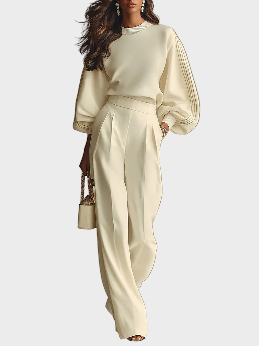 Selena – prążkowany komplet z szerokimi spodniami