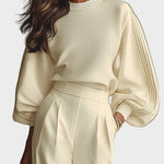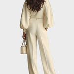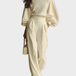 Ten komplet powstał z myślą o dniach, kiedy chcesz czuć się wygodnie, a jednocześnie wyglądać kobieco i stylowo. Idealnie sprawdza się podczas spokojnych spotkań, spacerów i codziennych wyjść.