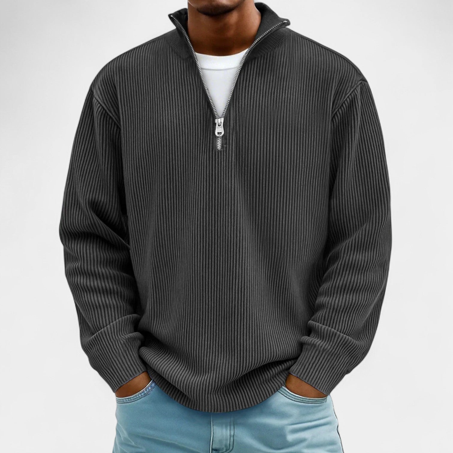 Martin – Męski sweter z polo zamkiem